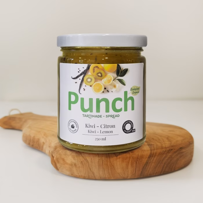 Ingrédients : Kiwi jaune* • Sucre de canne* • Jus de citron* • Pectine • Huile essentielle de vanille* (*) Ingrédient biologique